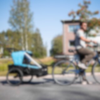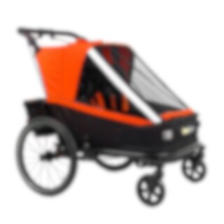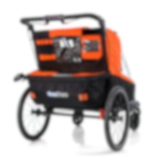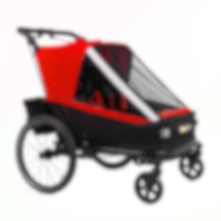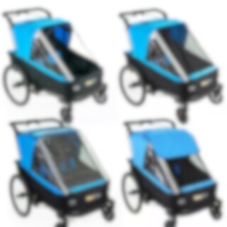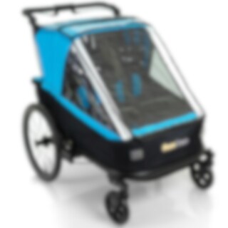 Stor og sporty sykkelvogn for to barn. Bernevognspakken inngår i prisen med to roterbare framhjul samt justerbare barnevognshåndtak. Perfekt for deg som vil sykle til byen og siden kunne gå mellom butikkene. Trivelig kupé med stort innslipp av lys. Ramme i aluminium gir en lav vekt i kombinasjon med utmerket rust beskyttelse. Legges enkelt sammen på kun noen få sekunder for enklere oppbevaring.