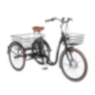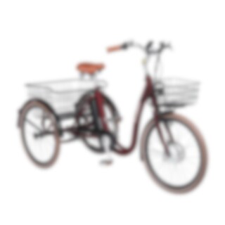Evobike Elegant er en stødig trehjulet elsykkel med 250W hjelpemotor fra Bafang, litiumbatteri med celler fra Samsung, tre gir og fotbrems.