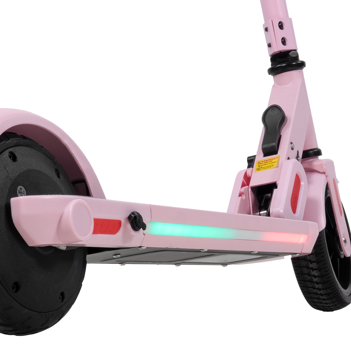 Scoot Jr har en stabil fotbrems bak som gir trygg oppbremsing. De solide dekkene reduserer risikoen for punktering og gir en problemfri bruk. LED-belysningen under fotbrettet øker synligheten og gir en ekstra kul effekt.