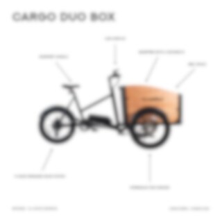 Evobike Duo Cargo Box er en slank elektrisk kassesykkel som er perfekt for deg som er ute etter en elsykkel hvor du kan laste mye. Du får enkelt plass til flere barn, kjæledyr og bagasje i kassen til el-sykkelen, som er utstyrt med benker (med plass til to barn) og sikkerhetsbelter. Duo Cargo Box har sortlakkert ramme og detaljer i børstet aluminium og skinn, som gir lastesykkelen et mer designet utseende.