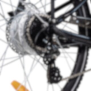 Girsystemet fra velkjente Shimano har åtte girmoduser som du enkelt kan bytte mellom med høyre hånd. Bremsesystemet består av hydrauliske skivebremser foran og bak, som gir sikker bremsing. En av skivebremsene er utstyrt med en smart parkeringsbremsefunksjon, som lar deg parkere sykkelen trygt i en skråning.