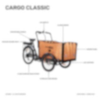 Cargo Classic er utstyrt med justerbart styre, høydejusterbart komfortsete med fjærer, bagasjehyller i aluminium, heldekkende skjermer og LED-belysning foran og bak. Dekkene er også punkteringssikre Kenda Shield.