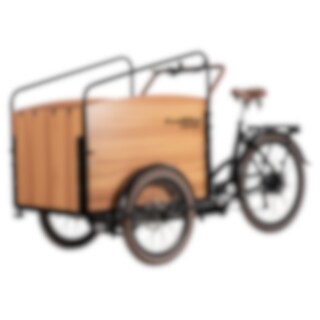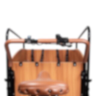 Den elektriske lastesykkelen Evobike Cargo Pro er en velbygget elektrisk lastesykkel med fine komponenter og et lekkert design. Designmessig er Evobike Cargo Pro slanket ned for å være en elektrisk lastesykkel, mye takket være at batteriet er skjult under en av sittebenkene i boksen. Sykkelen har en svartlakkert ramme samt detaljer i børstet aluminium og lær, noe som gir el-sykkelen et luksuriøst utseende. I boksen finnes doble sittebenker med plass for fire (!) barn, bagasje eller kjæledyr. På hver sitteplass finnes justerbart trepunktsbelte og langs langsidene finnes sikkerhetsbøyler som kan justeres i høyden.