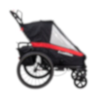 Det er raskt å konvertere sykkelvognen til en barnevogn når det trengs, og vognen kan også foldes på sekunder for enklere oppbevaring. På siden av barnevognen er det smart oppbevaring for barnevognhjulene/festearmen slik at bagasjerommet bak kan brukes til pakking. Bak vognen er det et stort bagasjerom samt lommer for eksempel mobiltelefon og vannflaske. Hengeren har justerbar demping bak i tre trinn som du kan tilpasse lastevekten.