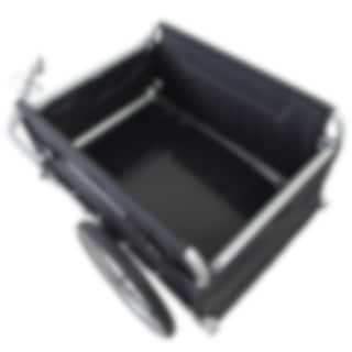 Stor og romslig transportvogn med aluminiumsramme og bunn i hardplast.