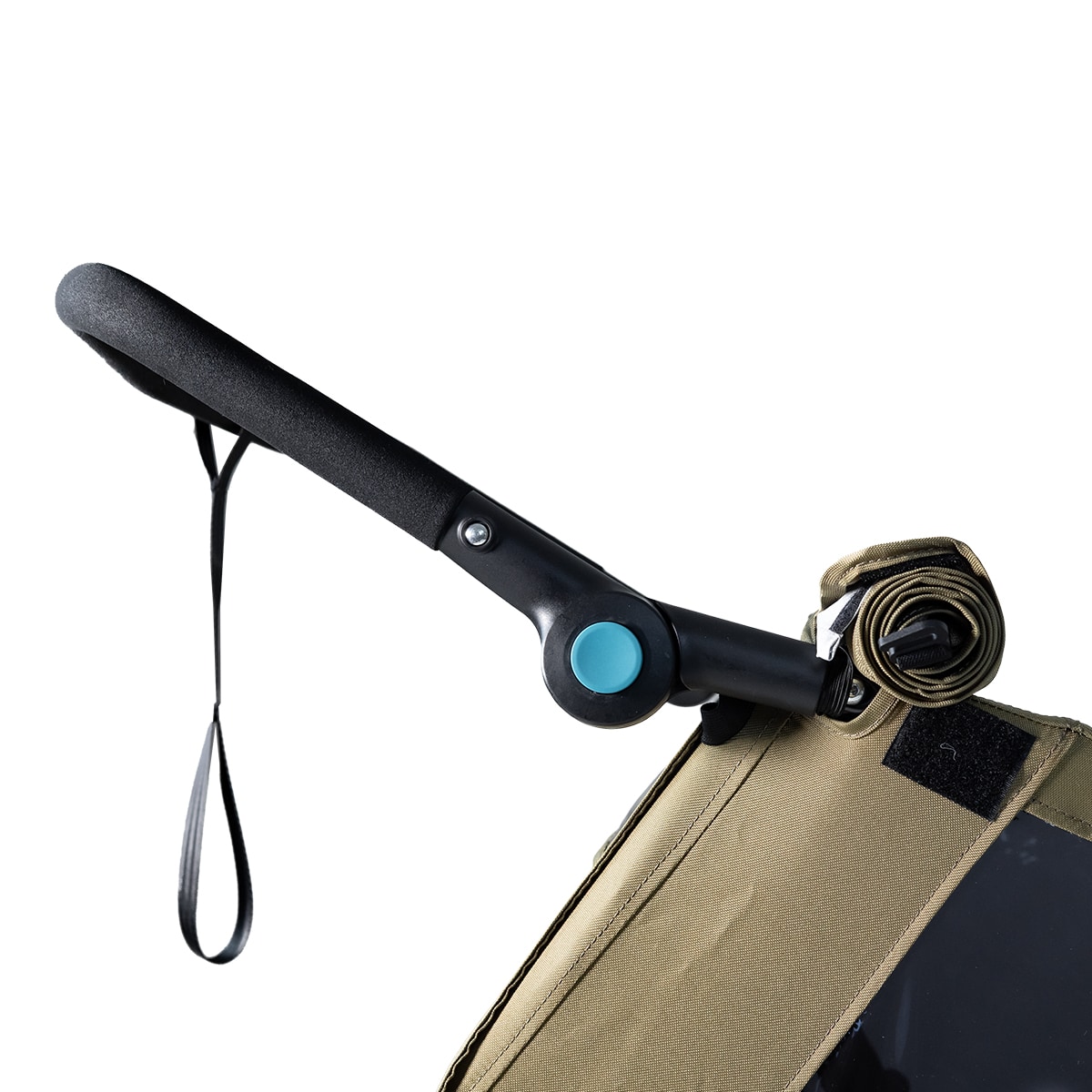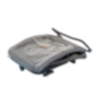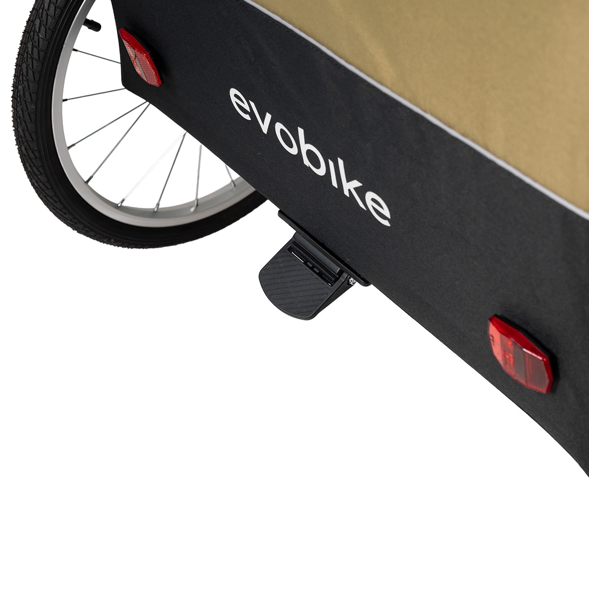 For økt trygghet er evobike Tjörn Duo utstyrt med reflekser og et flagg som forbedrer synligheten i trafikken. Parkeringsbremsen sørger for at vognen står stødig når den er parkert, og når den ikke er i bruk kan den enkelt foldes sammen for praktisk oppbevaring eller transport i bil.