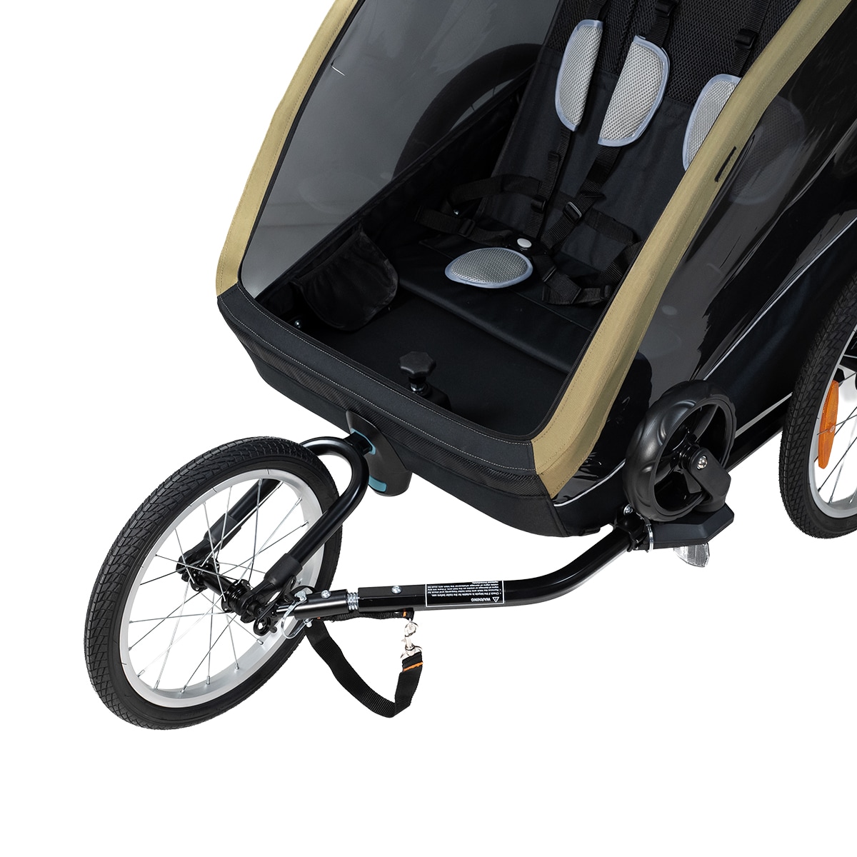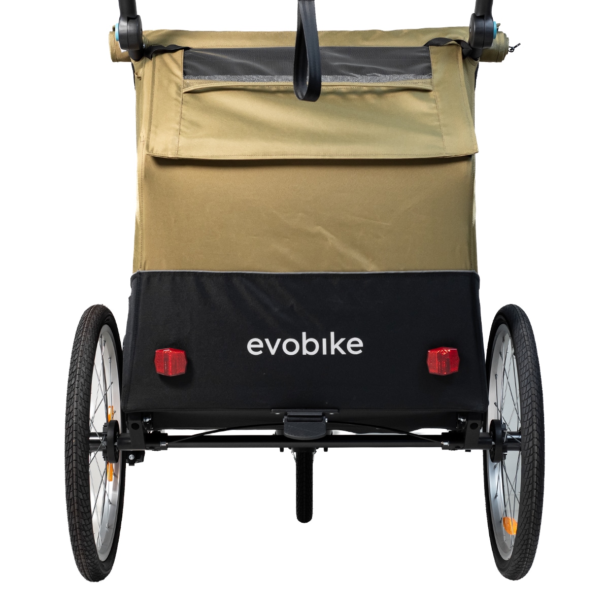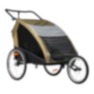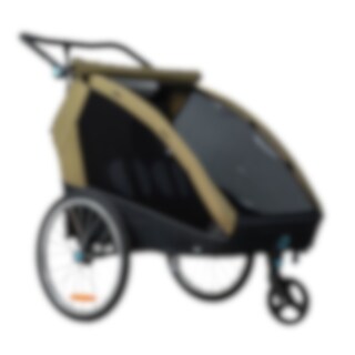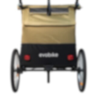 Evobike Tjörn Duo er laget for å fungere som sykkelvogn, barnevogn og trillevogn. Joggehjul og trillevognhjul følger med, noe som gjør vognen til et fleksibelt alternativ for familier med to barn. Babysele kan også kjøpes som tilbehør for deg som ønsker å bruke vognen med mindre barn.