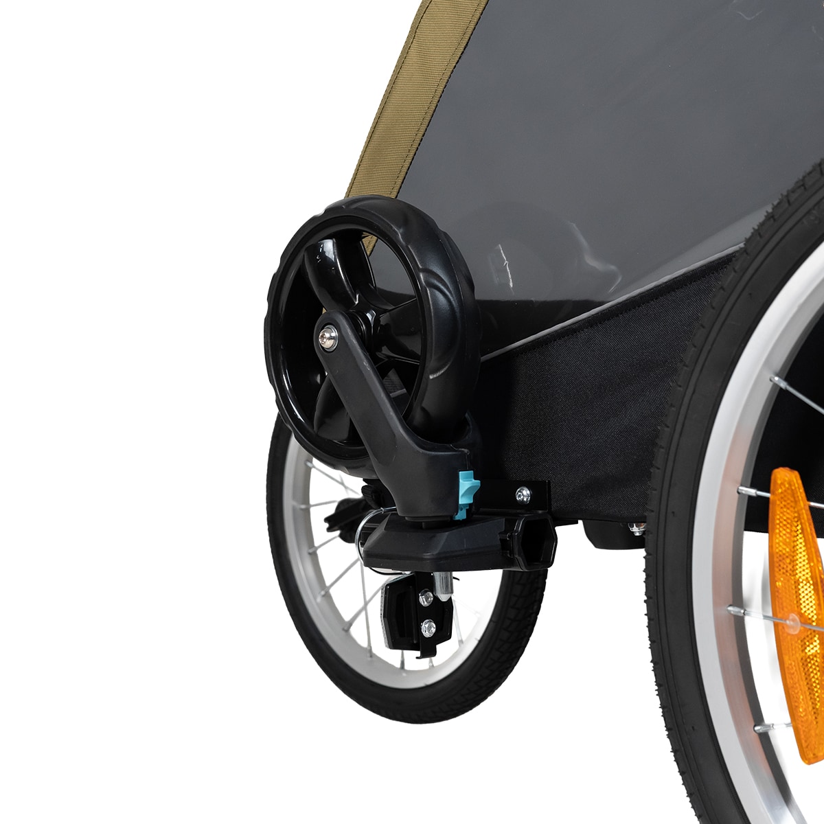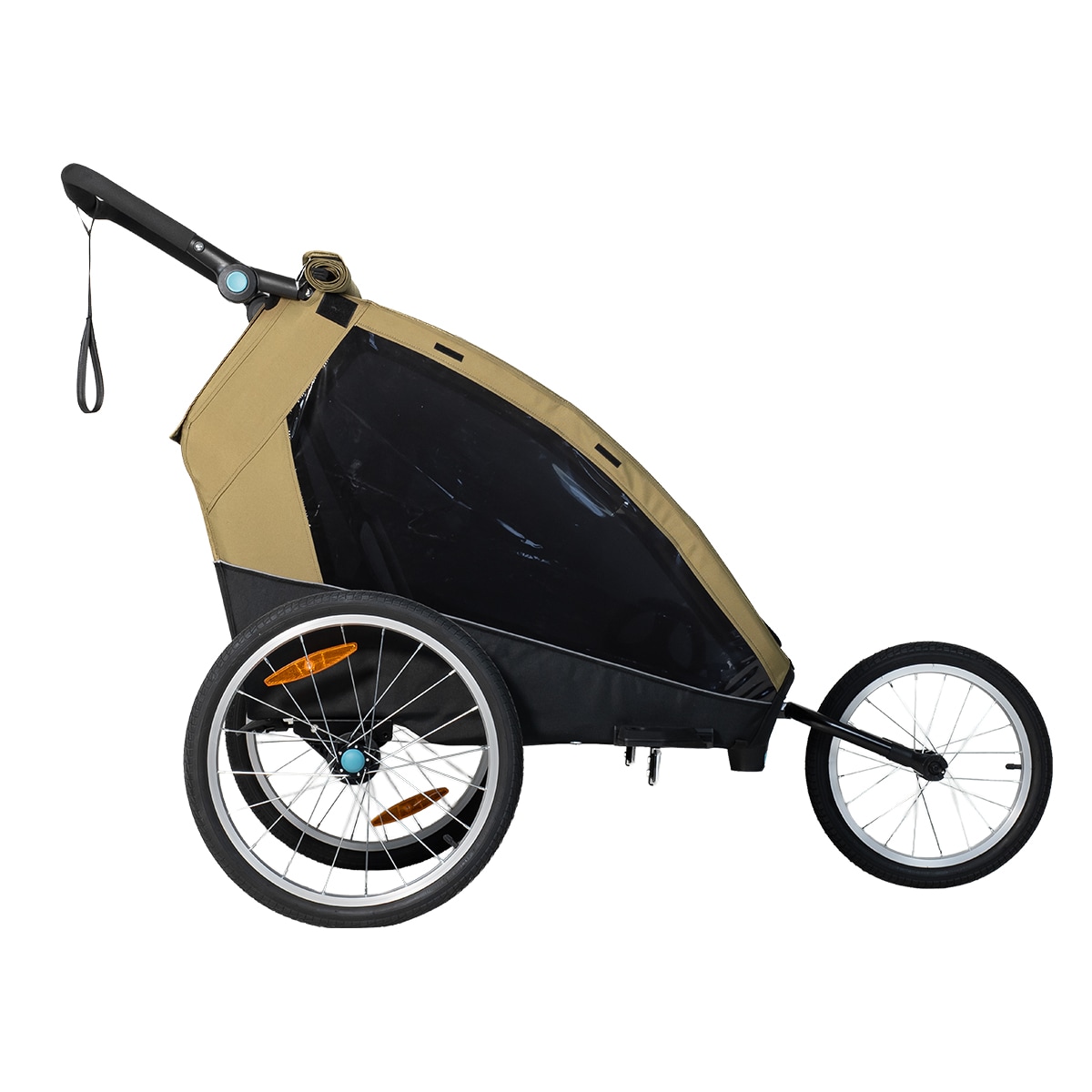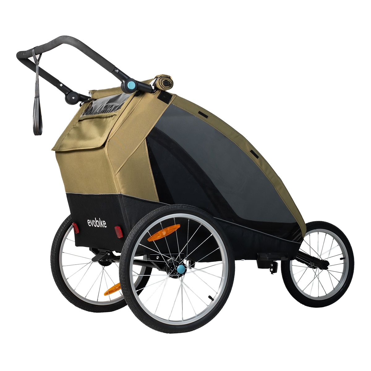 Evobike Tjörn Duo er laget for å fungere som sykkelvogn, barnevogn og trillevogn. Joggehjul og trillevognhjul følger med, noe som gjør vognen til et fleksibelt alternativ for familier med to barn. Babysele kan også kjøpes som tilbehør for deg som ønsker å bruke vognen med mindre barn.