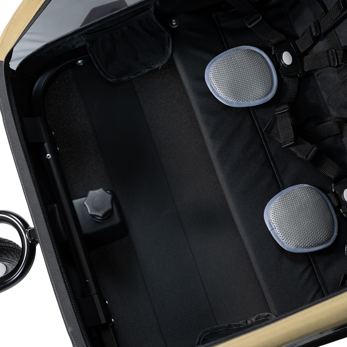 For ekstra funksjonalitet finnes det praktisk oppbevaringsplass bak på sykkelvognen, perfekt for for eksempel stelleveske eller annet tilbehør.