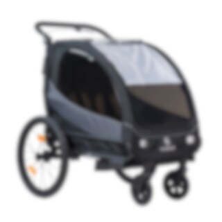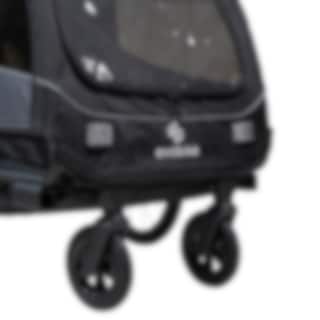 Sykkelvognen kan raskt gjøres om til en barnevogn ved behov, og den kan også foldes sammen på få sekunder for enkel oppbevaring. Bak vognen er det et stort bagasjerom og lommer til f.eks. mobiltelefon og vannflaske. Vognen har justerbar demping bak i tre trinn som du kan justere etter lastens vekt.