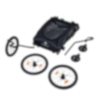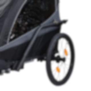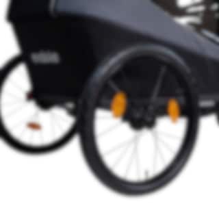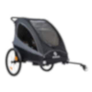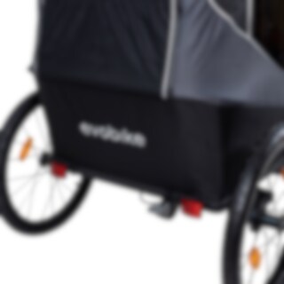 Her er en allsidig sykkeltilhenger for livets ulike gjøremål! EvoBike Yxlan Duo kan enkelt gjøres om fra barnevogn til barnevogn eller sykkelvogn. Kupeen kan raskt foldes sammen slik at vognen får plass i bagasjerommet på bilen. For best mulig komfort har vognen et polstret sete og 5-punkts sikkerhetsbelte for barnet, regntrekk og tonede sidevinduer.
