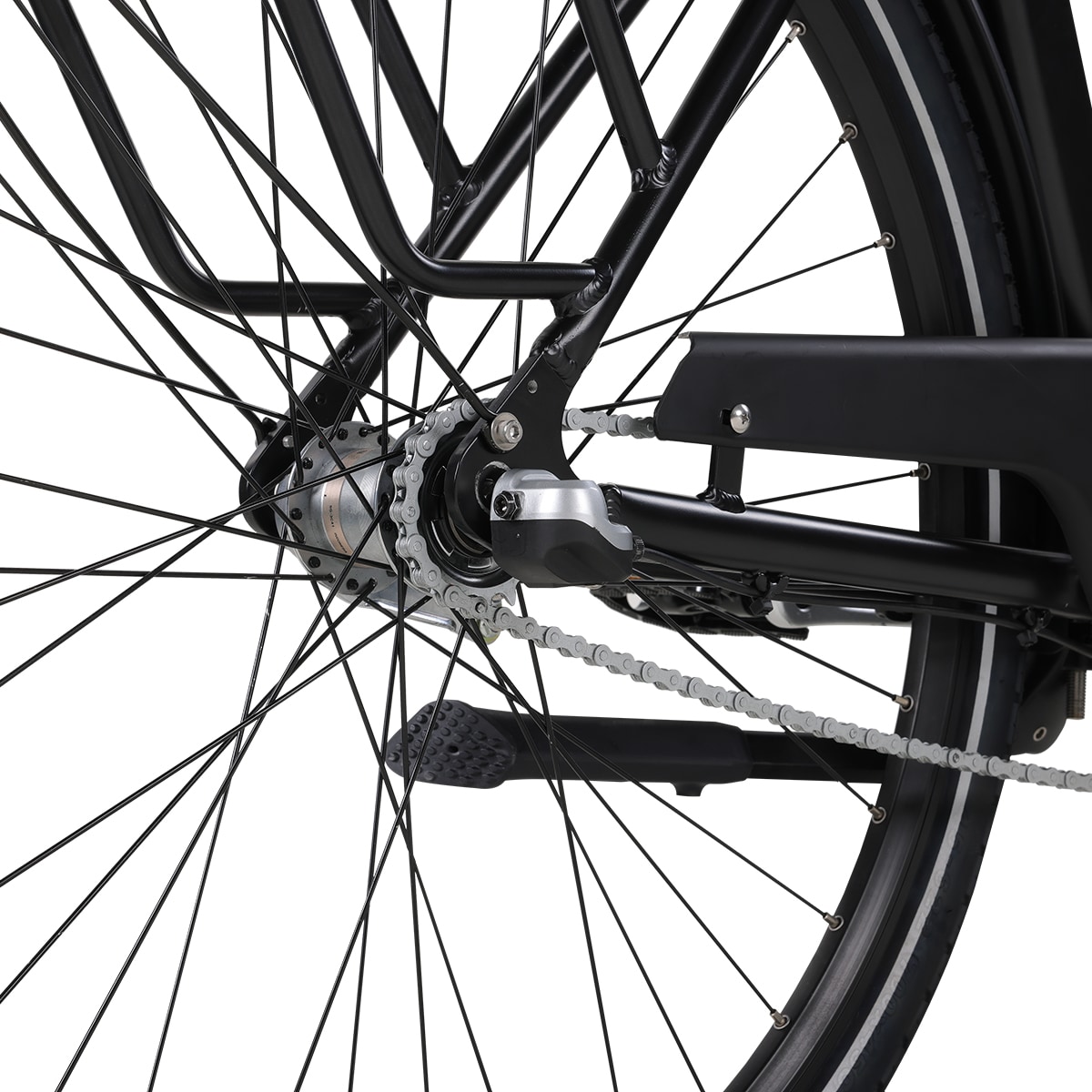 City-3 er en pålitelig og brukervennlig elsykkel med fotbrems, kurv og tre gir, perfekt for smidig sykling i hverdagen.
