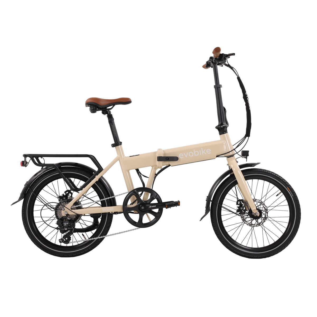 Evobike Travel Lite er liten i format, men stor i funksjon. Sykkelen har en kraftig bakhjulsmotor fra Ananda med 45 Nm dreiemoment som gir god assistanse. Den tydelige fargeskjermen fra Bigstone gjør det enkelt å velge assistansenivå og gir oversikt over batteristatus, hastighet, distanse og annen viktig informasjon.
