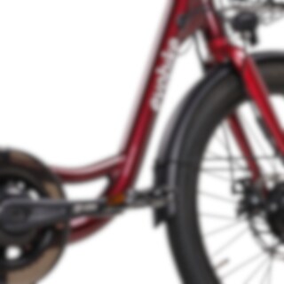 Elegant 2026 har et gjennomtenkt design med fokus på trygghet og enkel bruk. Den trehjulede konstruksjonen gir økt stabilitet, enten du står stille eller er i bevegelse. Rammen er laget av aluminium, noe som gjør sykkelen både solid og relativt lett for størrelsen. Det lave innsteget gjør det enkelt å gå av og på, og LED-belysning foran og bak sørger for god synlighet.