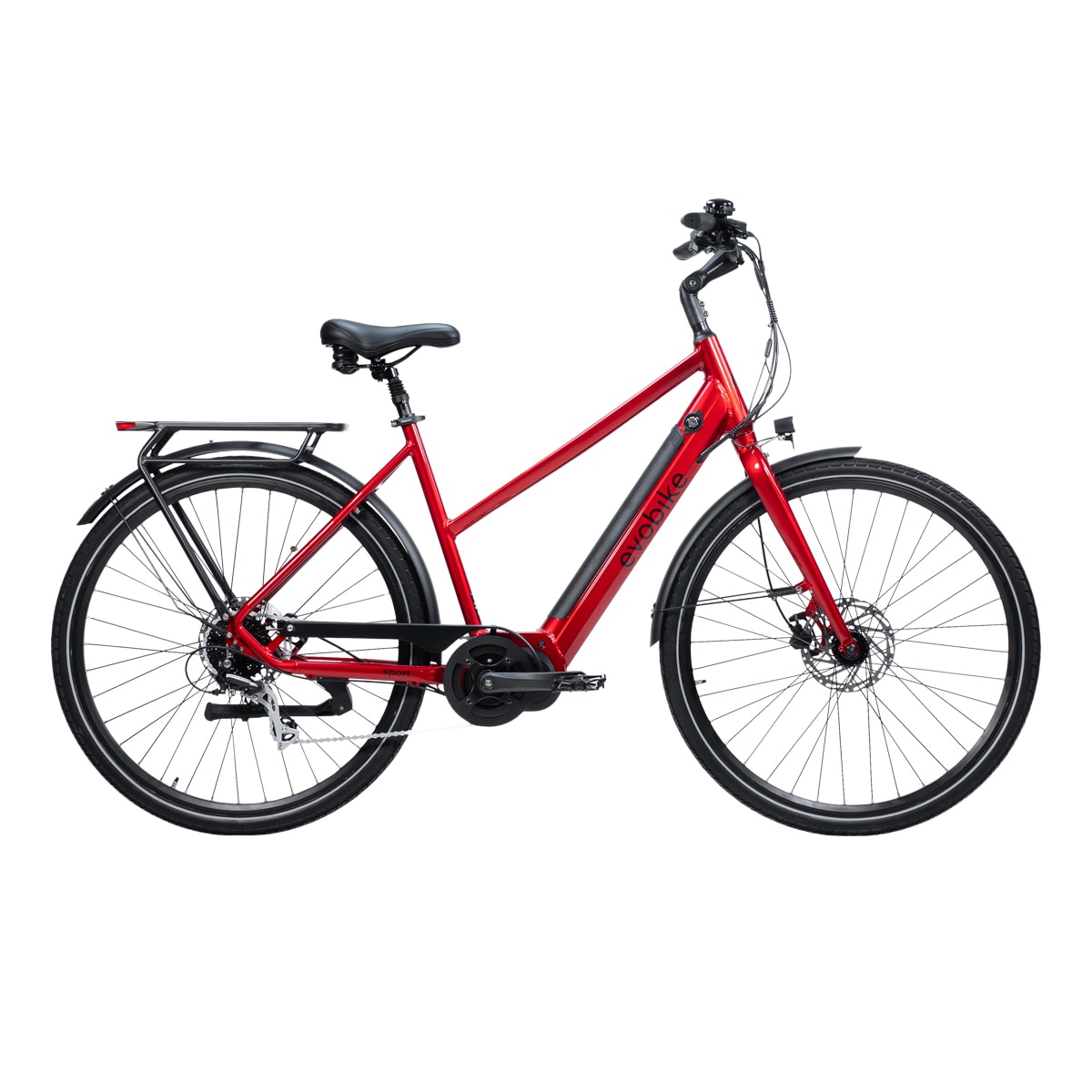 Evobike Sport-8 Mid-Drive Dame har et sporty og moderne design og leveres i to farger, rød og svart. Rammen er laget av aluminium med integrert batteri, noe som gir et slankt uttrykk og enkel bruk. Den nye Bigstone M210C TFT-fargeskjermen på styret forsterker det moderne og oppdaterte inntrykket.