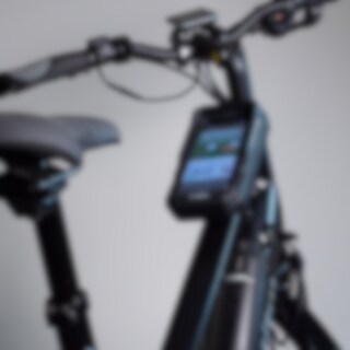 Vanntett (IPX6), roterbar mobilveske i forsterket materiale. Denne plasserer du enkelt på sykkelens styre eller ramme.