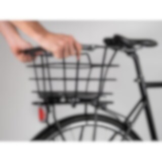 Kurv fra svenske Atran Velo med 23 liter plass. Håndtakene gjør det enkelt å bære kurven når den fjernes. Med AVS klikksystem (Atran Velo System) er den rask å installere og sitter stabilt på sykkelen. Kurven har en maksimal belastning på 10 kg.