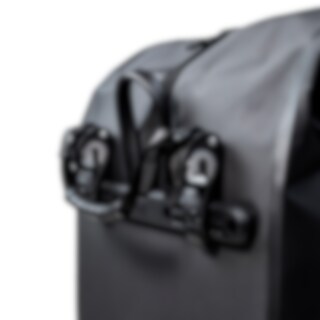 Vesken festes enkelt på bagasjebrettet med robuste hurtigfester (8–22 mm) og medfølgende avstandsstykker, noe som gjør at den sitter stabilt selv på ujevne veier. Den har en justerbar og roterbar skulderrem på ca. 3,8 cm bredde, som gjør den komfortabel å bære med seg.
